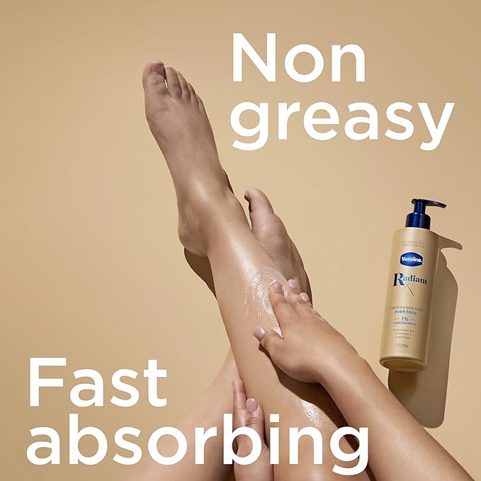 - CLINICALLY PROVEN BODY LOTION: Vaseline Radiant X Even Tone Nourishing Body Lotion (11 Oz) with coconut oil, vitamin c, and peptides, helps visibly reduce dark spots and even your skin tone in just 14 days.