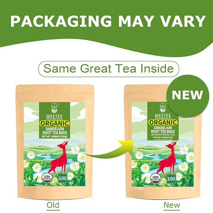 WT WEETEE Organic Dandelion Root Tea Bags, Pure Raw Dandelion Root 100 Count, Earthy & Refreshing Herbal Tea