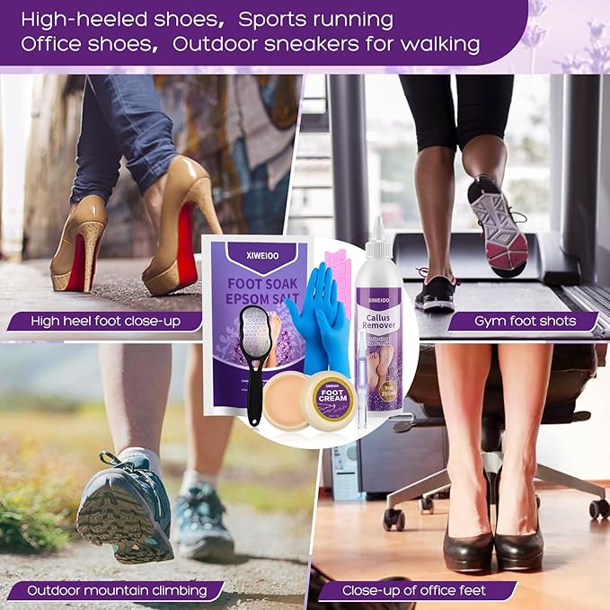 - 💕your feet need: calluses, discolored toenails, cracked heels and foul smells are common but unpleasant conditions everyone's feet can suffer from - but they can be avoided. This 6-in-1 callus removal kit, professional-grade foot bath salt callus removal gel and 100% natural tea tree foot soak will soften your calluses and eliminate their painful symptoms quickly and effectively in the comfort of your home