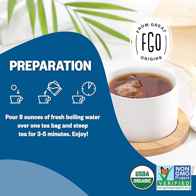 FGO Organic Black Decaf Tea, 100 Count, Eco-Conscious Tea Bags, Resealable Bag, Packaging May Vary (Pack of 1)