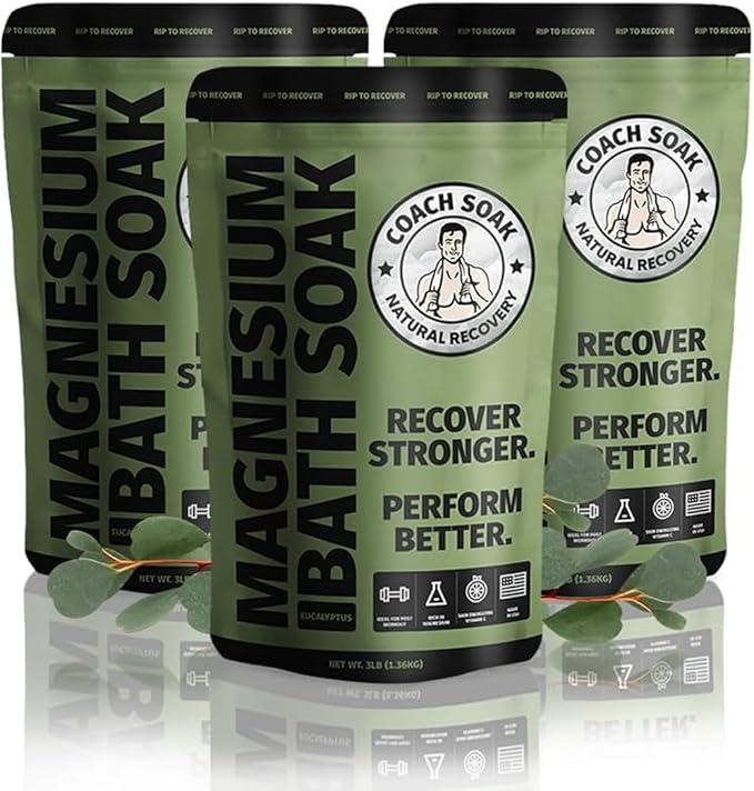 3 Pack Bundle: Coach Soak Recovery Bath Soak, Epsom Salt Bulk, Bath Salts Bulk, 3 Pack Bundle, Total of 9 Pounds (Eucalyptus Tea Tree)