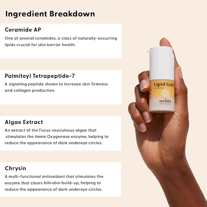 Stratia Lipid Gold Eye Cream Moisturizer and Anti-Aging Skincare for Dark Circles, Fine Lines, Wrinkles, and Under-Eye Brightening, 0.5 fl. oz