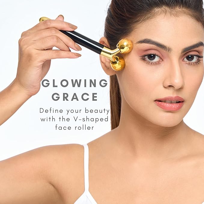 Black & Gold 3D Electric Facial Roller Massager Set, V Shape Roller & T Shape Massager, 3D Facial Roller, Skin Care Tools, Personal Massager