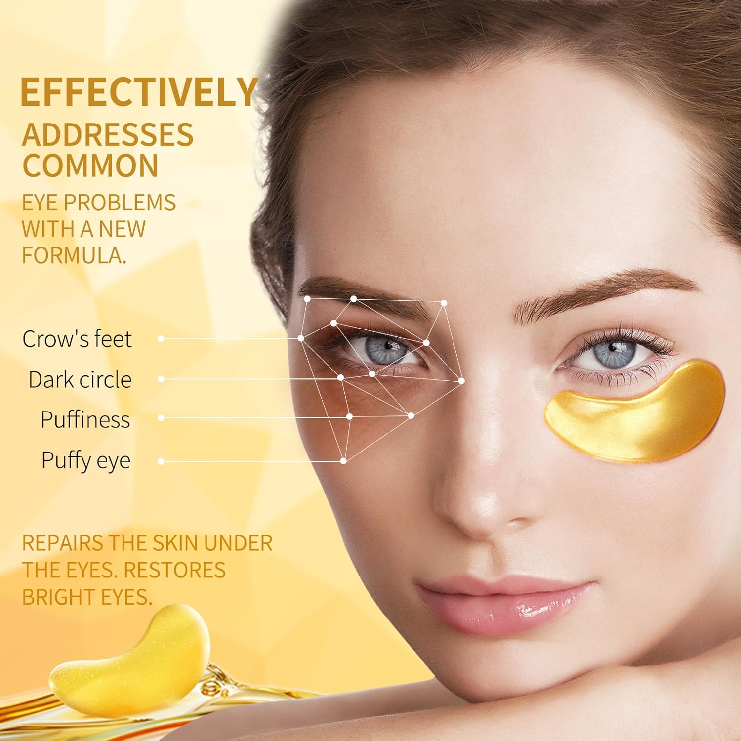 - MOISTURIZING AND NOURISHING ELEGANCE - Enriched with gold particles and an array of natural mineral ingredients including collagen and hyaluronic acid, these eye masks eliminate puffiness, fine lines and dark circles. Say goodbye to visible signs of aging with our gorgeous and easy-to-use gold eye masks.
