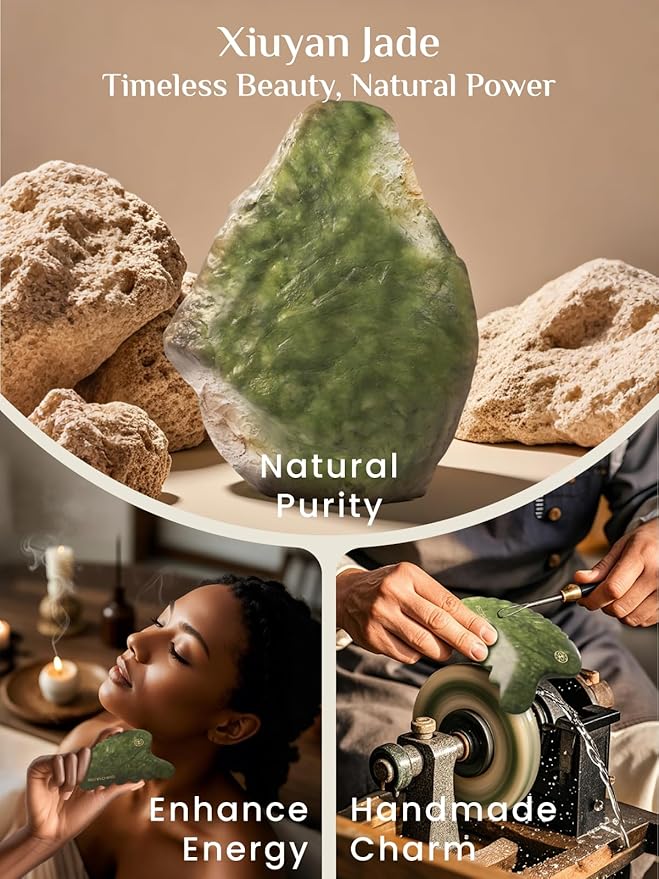 - Sourced from Nature:Rena Chris gua sha tool is handcrafted from 100% natural Xiuyan Jade, Xiuyan jade symbolizes warmth and softness