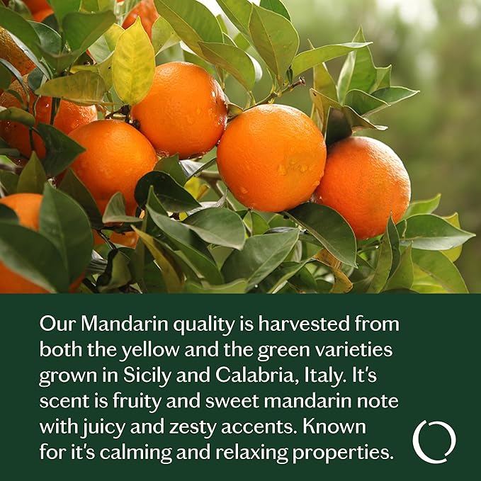 - Key Ingredients: Mandarin (Citrus Nobilis) Peel Oil, sourced from Calabria Italy. It's scent is fruity with juicy and zesty accents. Known for it's calming properties.
