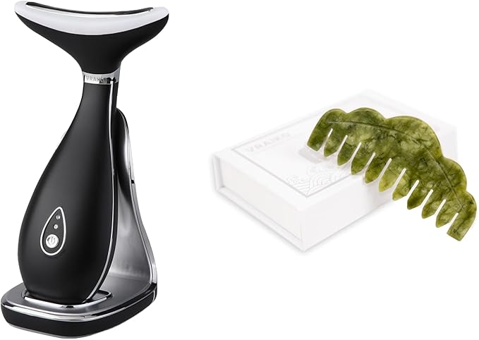 Lily Neck Face Massager Skin Rejuvenation Device (Black) with Triple Action LED, Natural Jade Comb Head Massager Scalp Massage Comb