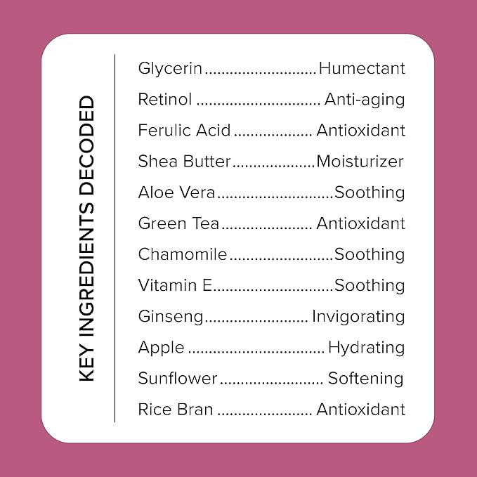 - Active Ingredients : Hyaluronic Acid, Vitamin E, hyaluronic_acid, Retinol