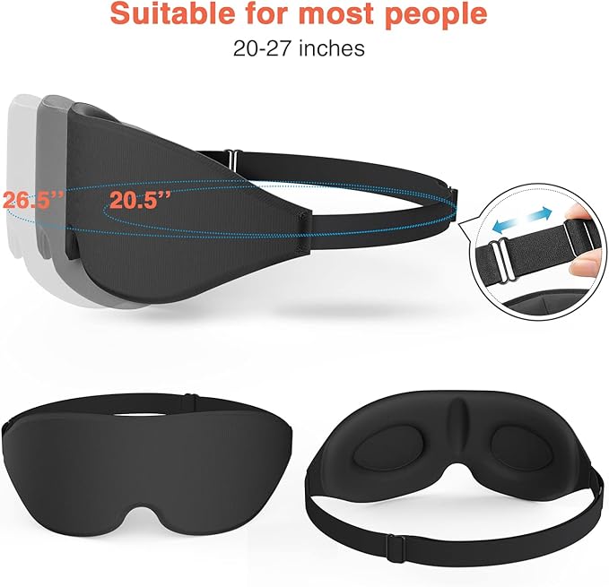 - Our Sleep Mask has a 9cm range adjustable strap design which could adjust to 20cm without hooking your hair.