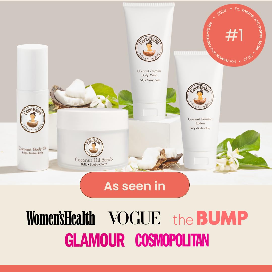Cocobaba Stretch Mark Relief Set - Belly oil for pregnancy care package | Stretch Mark Cream for Pregnancy | Body wash | Body scrub | First time mom gift | Pregnancy Must have