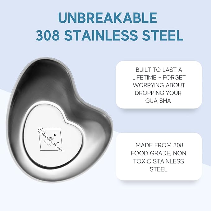 - STAINLESS STEEL & UNBREAKABLE GUA SHA - Unlike others, our new and improved stainless steel construction provides you with an ultra smooth Gua Sha which glides gently across your skin, which is built to last a lifetime, so no more worrying about dropping it!