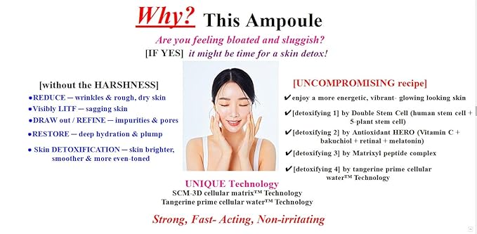 - [WHY THIS PRODUCT] This ampoule harnesses advanced ingredients to tackle common signs of aging, such as wrinkles, sagging, and uneven skin tone. It offers a comprehensive solution to enhance skin health and appearance conveniently at home.