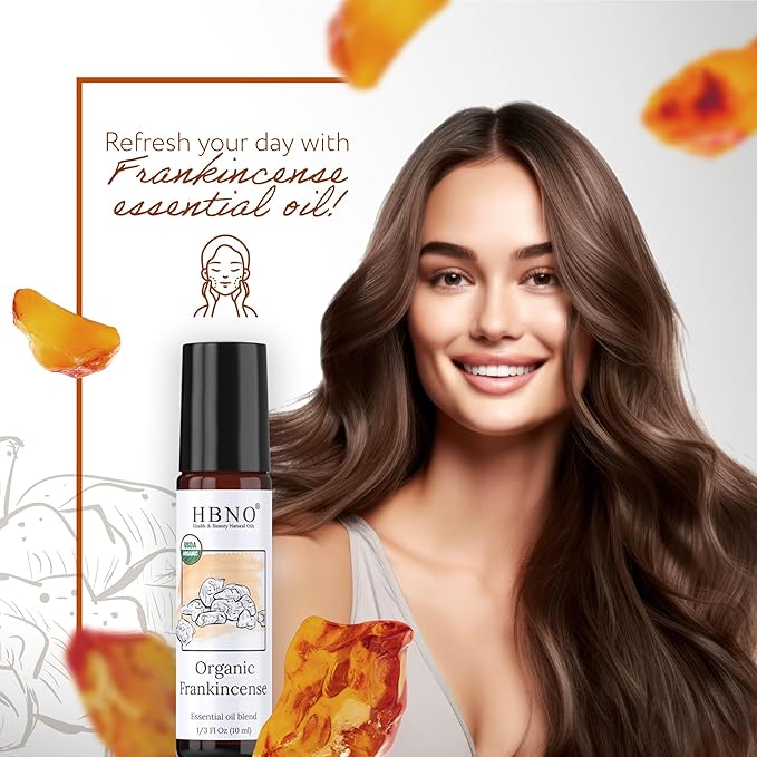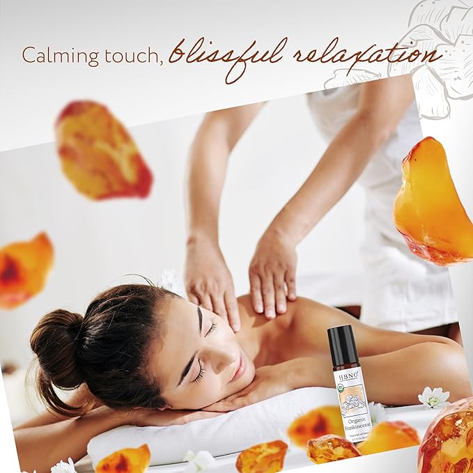 HBNO Organic Frankincense Essential Oil Roll-On - 1/3 oz (10 ml) Travel Size - USDA Certified Organic Frankincense and Mct Oils - Perfect for Traveling, Aromatherapy, Massage, perfumes, moisturizer.