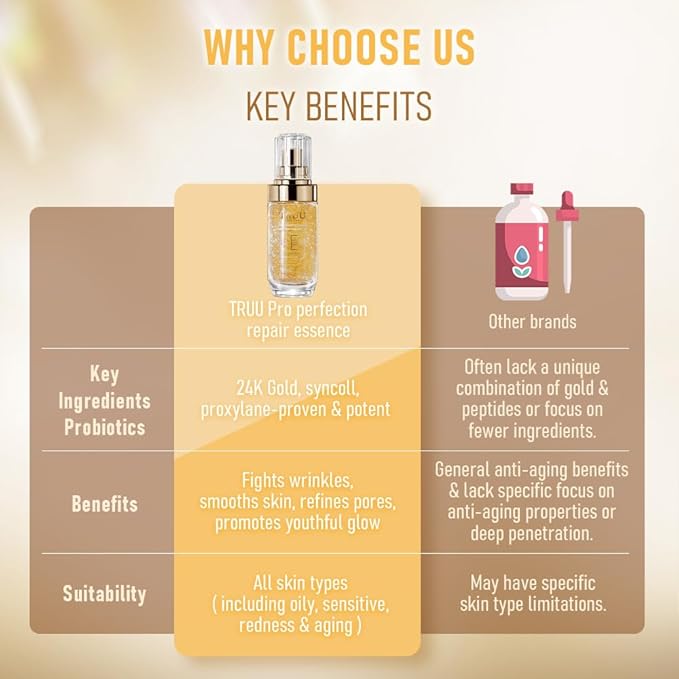 - Acetyl Hexapeptide-8 and concentrated hydration repair serum: leveraging Gold peptide power train penetrating deep into the skin releasing micro repair essence, strengthening epidermal recovery, skin looks younger and healthier.