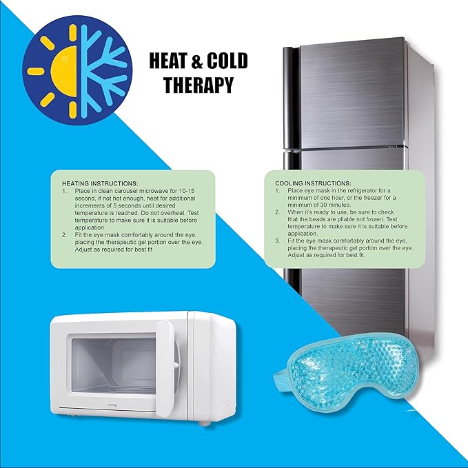 - Adjustable & Unisex Fit - With an adjustable head strap, our hot and cold eye mask is sure to fit perfectly on all different head shapes and is suitable for women, men, and children. Designed for long hours of comfortable wear as you relax and rest. A secure fastener ensures the cold eye mask firmly stays on your eyes even as you toss and turn in bed.