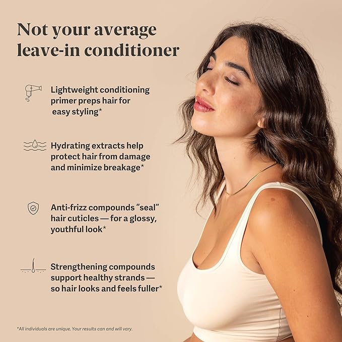- REPAIR, CONDITION, DE-FRIZZ: This lightweight, ultra-hydrating primer helps “seal” the cuticles surrounding your hair shaft to give your strands a glossy, more lustrous look . Made from a blend of nourishing plant extracts and anti-frizz compounds, this conditioning spray infuses hair with moisture — without weighing it down. This preps your hair for easy styling, for a flawless “salon fresh” look in seconds.*