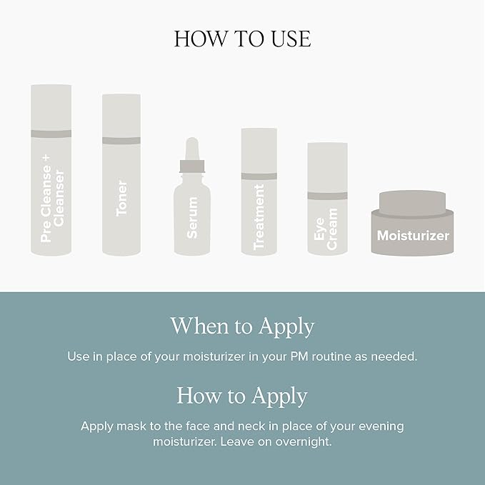 - How To Use: Use in place of your evening moisturizer, after applying serums. Apply the mask to the face and neck, like a night cream. Leave it on overnight for enhanced benefits.