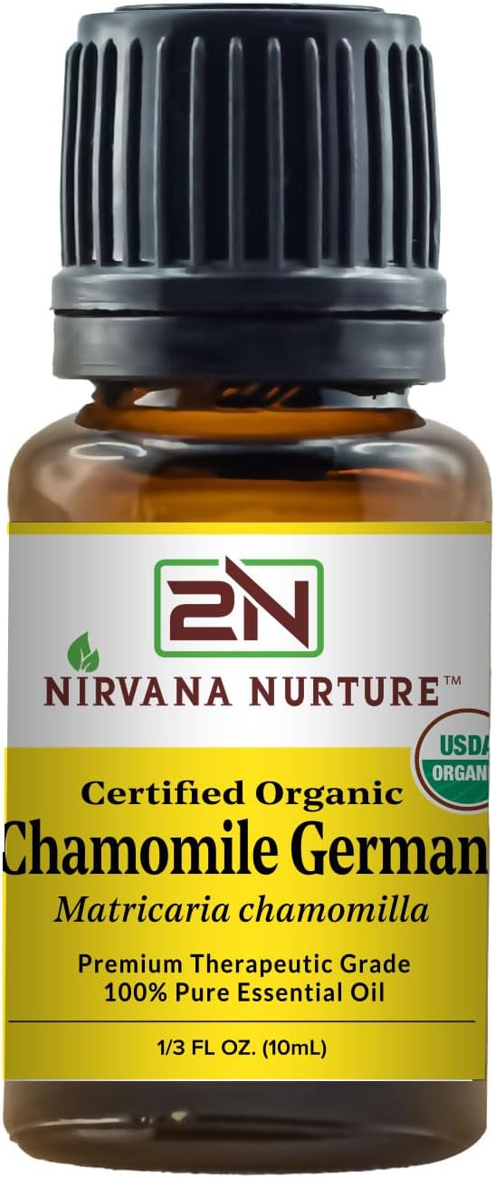 Chamomile German Essential Oil USDA Certified Organic 100% Pure Premium Therapeutic Grade, Undiluted - Aromatherapy Diffuser for Calm and Relaxation, Skin Care, Hair Care
