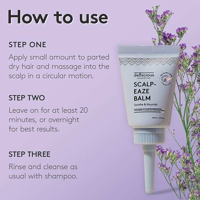 Delhicious Dry Itchy Scalp Treatment Moisturizer Balm - Amla Hair Oil, Shea Butter & Mango Butter - Scalp-Eaze - Psoriasis Scalp Treatment, Dry Scalp Serum - SLS Free, Natural, Vegan, Ayurveda - 65ml