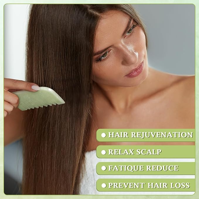 - Comfortable and Smooth Experience: both the green eye mask and small comb are smoothly polished, offering a relaxing, spa like experience; Experience the comfort and satisfaction of this luxurious jade set; This cold and natural mask is suitable for kinds of skins' care, and it can anti aging and beautify the skin, and it can also soothe and relax the eyes and protect vision; The comb can improve blood circulation, which relieves headaches and reduces stress, which helps with body and scalp care