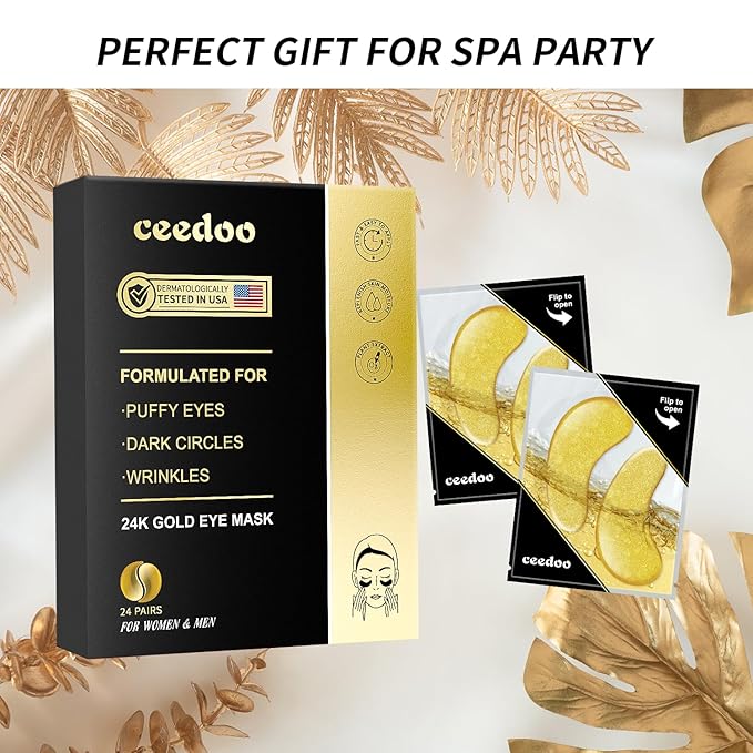Under Eye Patches - 24 Pairs Gold Under Eye Mask for Puffy Eyes, Dark Circles, Eye Bags, Wrinkles, Collagen Eye Gels with Rejuvenating Treatment, Gifts for Women