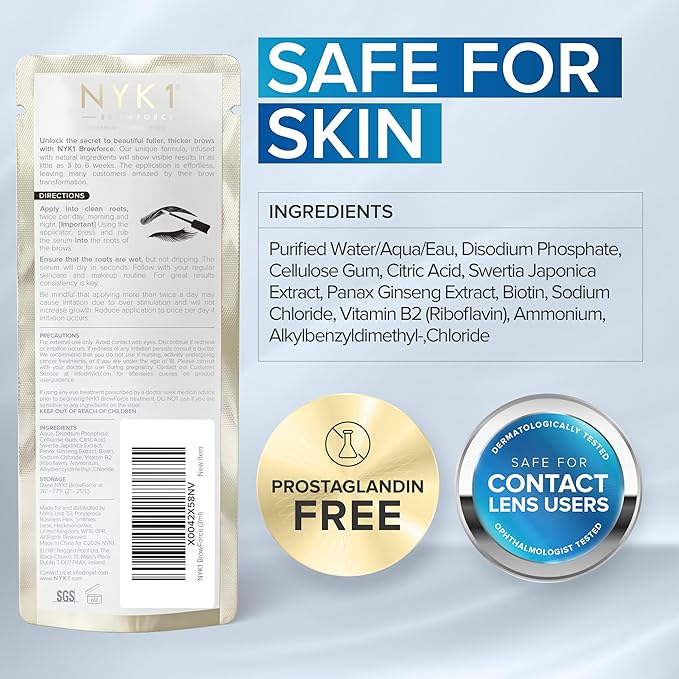NYK1 CONCENTRATED Eyebrow Growth Serum For Thicker Brows (3ml) BrowForce Eyebrow Serum To Grow Brows For Fuller Thicker Natural Brow - Advanced Eye Brow Growth Serums Formula For Eyebrows Regrowth