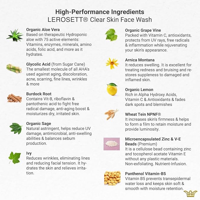 - 🌱 Leaping Bunny Certified & Woman-Owned – LEROSETT has been a professional skincare choice for 35+ years, with over 1 million users. Made in small batches with a plant- and clay-based formula. Formulated without parabens, sulfates, or harsh chemicals. For a complete acne routine, try the LEROSETT Organic Acne Kit.