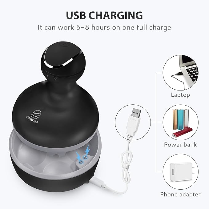 - Advanced Design: The head massager for hair growth adopts an ergonomic grip design for easy handling and enhanced comfort during use. Its 4 detachable massage heads facilitate easy cleaning, maintaining health and hygiene while enjoying a soothing massage. The Electric Scalp Massager charges conveniently through a charging base and USB cable, ensuring easy and safe charging.A very thoughtful Christmas gift for family and friends.