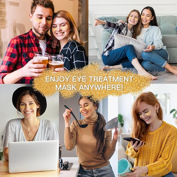 - Premium 24K Gold Infusion – YXFOOR eye masks are enriched with pure 24K active gold and hyaluronic acid to deeply nourish delicate under-eye skin. This luxurious blend promotes collagen production, reduces puffiness, and brightens dark circles for a visibly rejuvenated look.