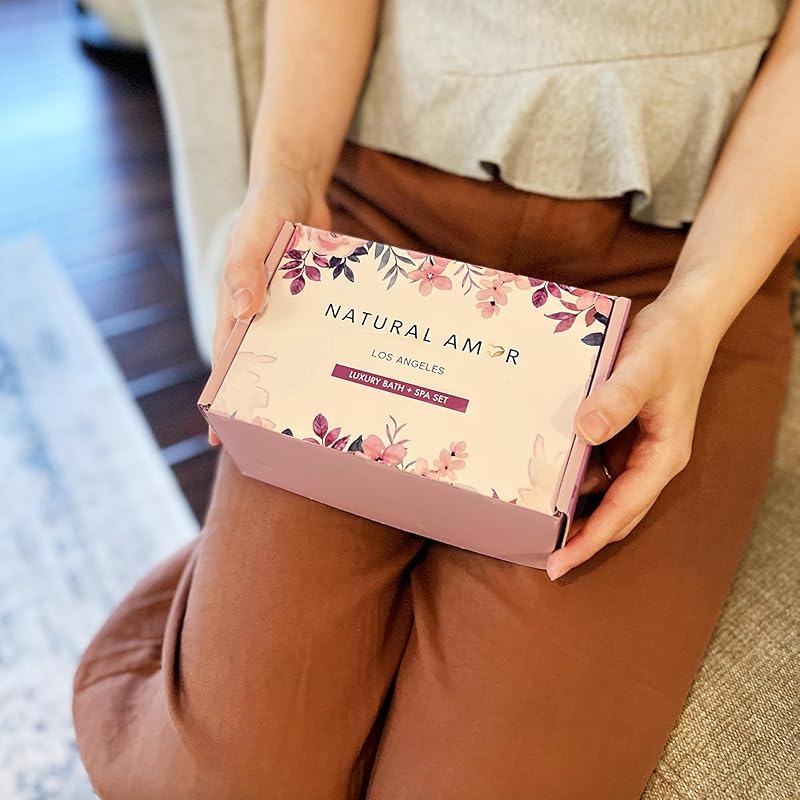 Natural Amor Handmade Spa Gifts for Women, Thank you Gift, 5pcs Gift Set for Women,Includes Bath Salt, Bath Bomb, Lip Balm