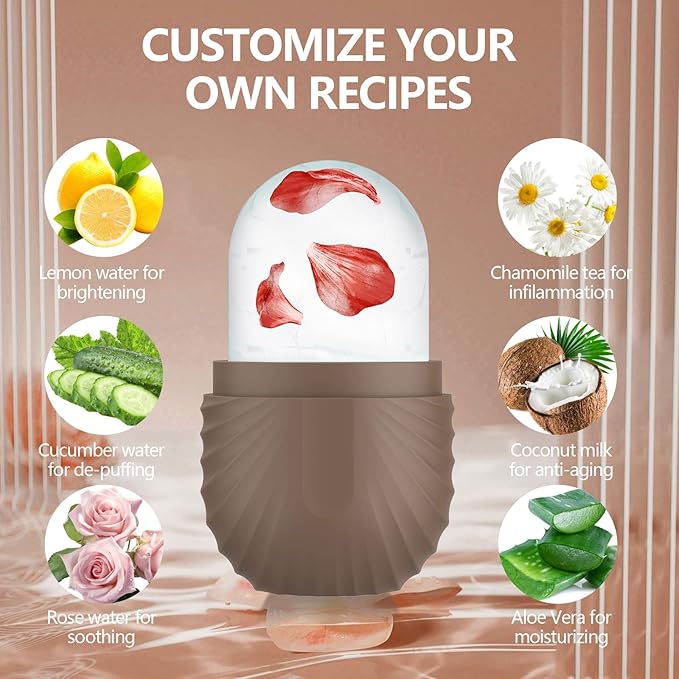 - Customize Preferences - Facial ice roller can enhance the skin care effect as per your creativity and customized formula according to your specific skin needs, such as lemonade for whitening, and coconut for improving skin. Even you can use a juicer to squeeze them into juice, then add water, essential oils, and roses to the ice tray.