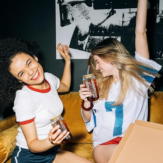 - 🎁【Sister Gift Basket Set Contains】The 7-piece Sister Gift Set is a thoughtful choice, 16 Oz can glass with lid and straw, 1 x makeup bag, 1 x soy wax Lavender scented, 1 x pure handmade soap, 1 x bath bomb, and 1 x heartfelt greeting card, 1 x unique Colorful Imperial natural stone bracelet and a card for your special message.