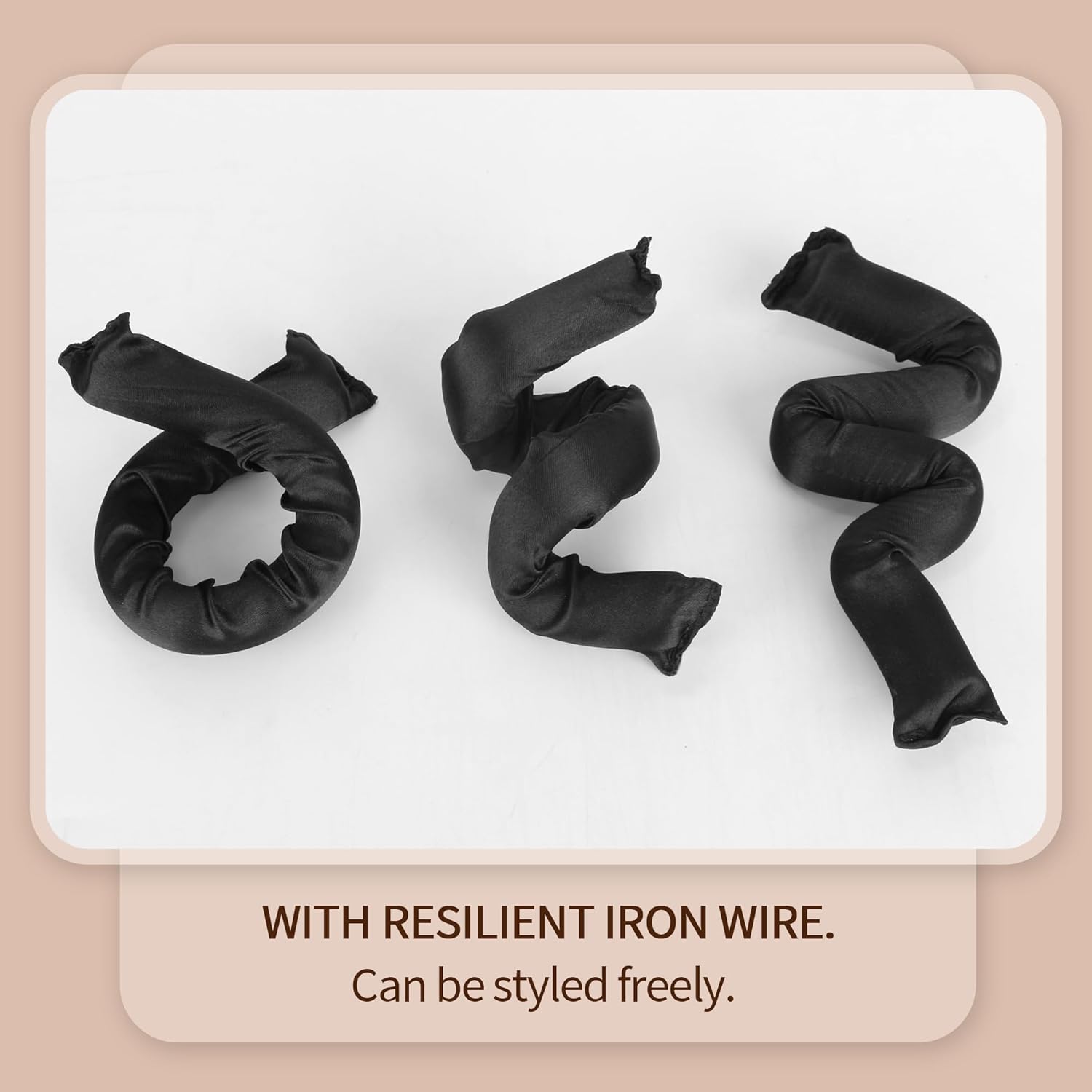 Black Satin Covered Heatless Overnight Curling Rods for Curls and Straight Short Hair - 6Pcs