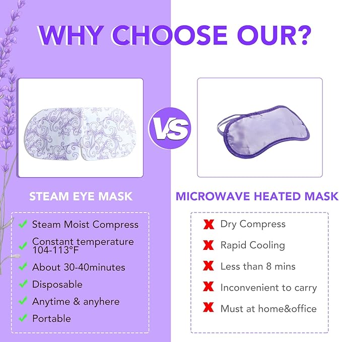 - 【Upgrade Steam Eye Mask】The self heating steam eye mask is made of high-quality cotton non-woven fabric, which is comfortable and skin friendly, fits the eyes well, and effectively reduces problems such as dryness, swelling, and dark circles under the eyes. Steam eye masks can release warm steam, promote blood circulation in the eyes, quickly relax eye muscles, and make the eyes glow naturally.