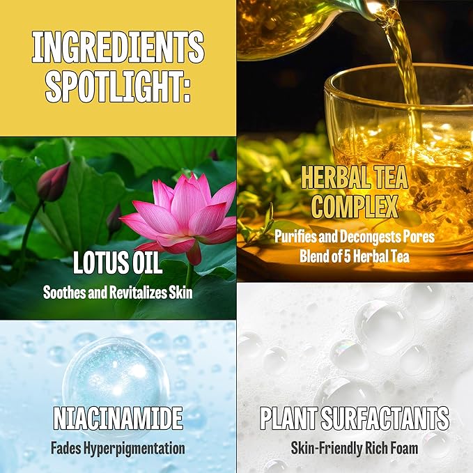 - SKIN-LOVING INGREDIENTS. Fortified with a Multivitamin Complex, this hydrating face wash nourishes and soothes. Herb Tea Extracts help calm the skin, while 19 Plant Oils, including Moringa, Jojoba, and Camellia, provide deep hydration. Plus, Niacinamide refines texture, leaving skin refreshed and renewed.