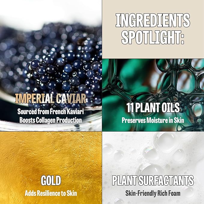 - SKIN-LOVING INGREDIENTS. Fortified with Caviar Oil and Hydrolyzed Caviar Extract, this hydrating face wash supports elasticity and strengthens the skin barrier. Niacinamide refines texture, while plant-based surfactants ensure a gentle cleanse. Propolis Extract and Centella Asiatica soothe and replenish, perfect for daily use.