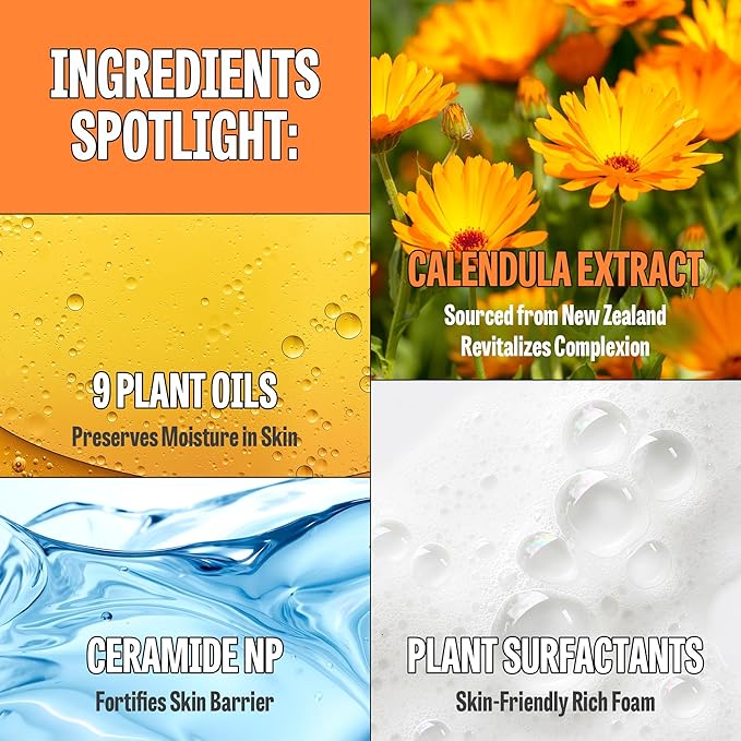 - SKIN-LOVING INGREDIENTS. Fortified with 9 Plant Oils and 18 Plant Extracts, this hydrating face wash offers deep nourishment. Panthenol reinforces hydration, while botanical surfactants like Soapwort, Soapbark, and Soapberry create a luxurious lather without stripping the skin.