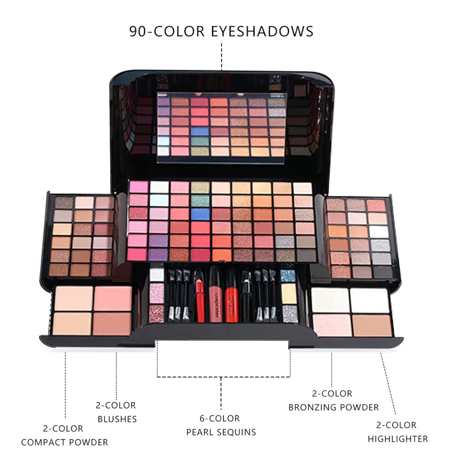 Makeup Sets, Multifunction Makeup Palettes with Mirror, 90 Color Eyeshadows/Compact Powder/Sequins/Bronzing Powder/Highlighter/Lip Color, Makeup kit for Women Full Kit - #A