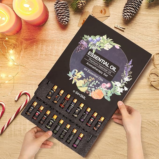 - ✅【Premium Essential Oils Set】There are 64 different essential oils, each of which can give you a unique fragrance of nature and bring you different experiences -In this essential oils gift set, experience the refreshing fruity essential oils, the floral fragrance oils, and the woodsy aromatherapy essential oils that are also pleasant, create a cozy, refreshed atmosphere.Lavender, peppermint, rose, jasmine, ylang ylang, lemon, eucalyptus, lemongrass, sweet orange, tea tree, chamomile, frankincense, rosemary, patchouli, sandalwood, ginger, grapefruit, bergamot, clove etc.