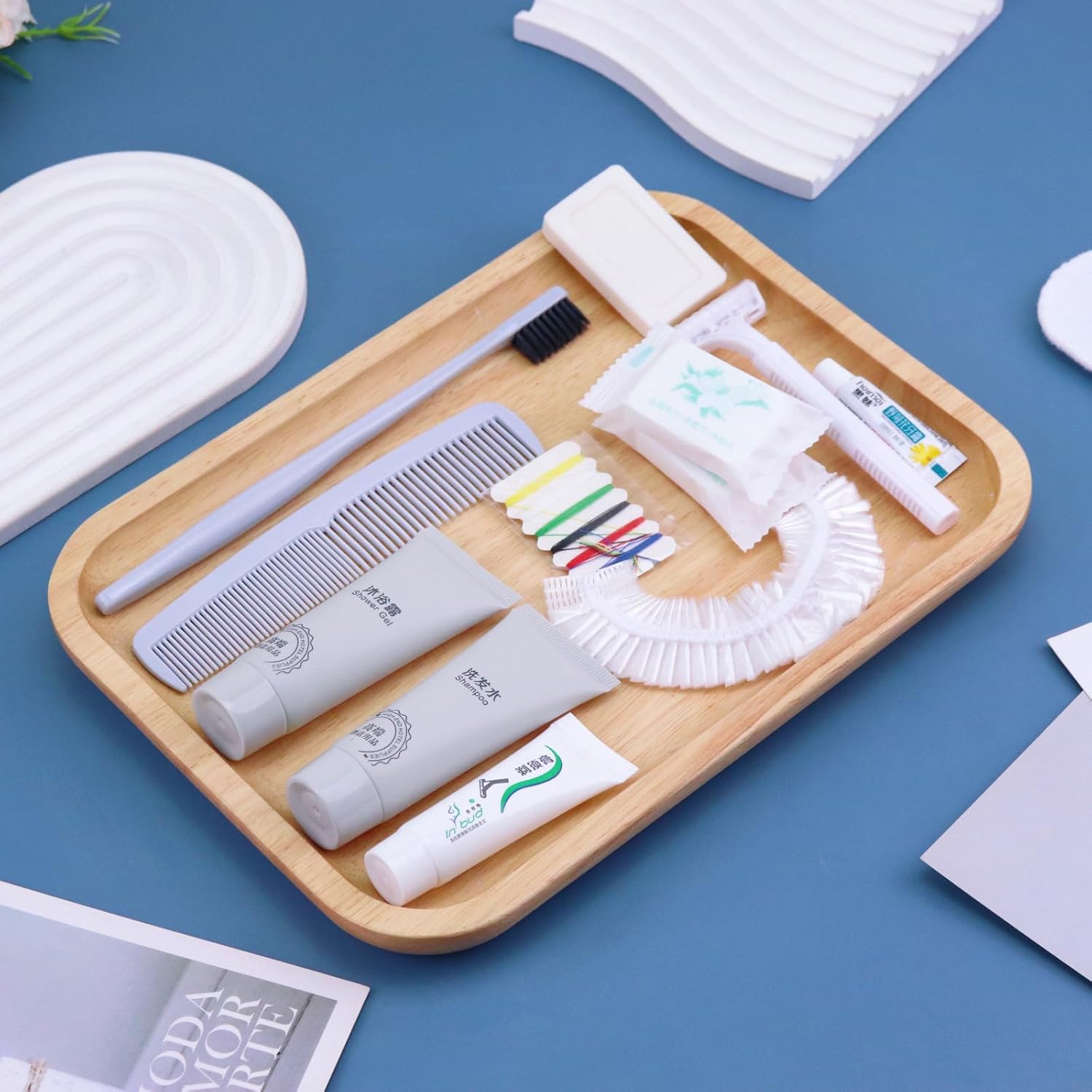 - More sets to match: our hygiene travel kit comes in a pack of 25 sets. Each travel size hygiene products bulk set consists of a Toothbrush, toothpaste, shaver, Shaving cream, comb, bath gel, shampoo, soap, bath cap, Needle and thread bag, Shoe Shine Cloth and 2 compressed face towels. 13 items in a set. personal care travel size toiletries make it even more comprehensive, convenient and comfortable to use.