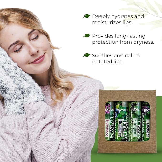 - Premium collection: Enjoy a selection of scents with Original, Fireweed honey, Lavender, and Blueberry flavors in our 4-piece chapstick set, each bringing a unique sensory experience to your lip care routine.