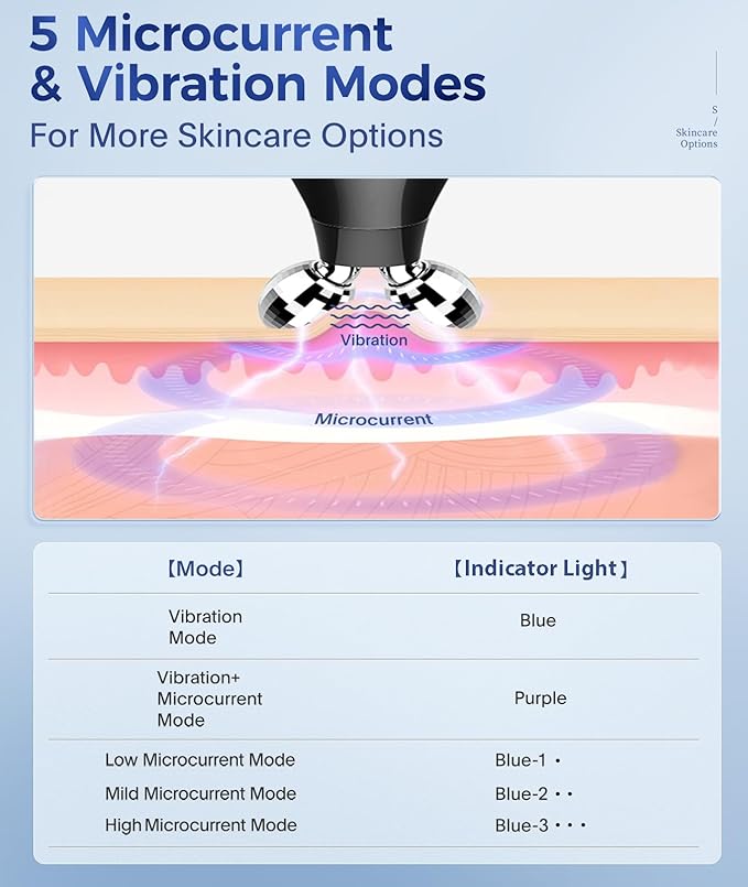 - [Safest Facial Massager with 5 Modes] Applying mild microcurrent and gentle vibration, this face massager will upgrade your skincare routine, firm up the face and neck.