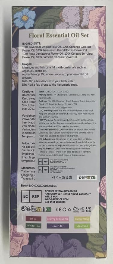 - 🌼【Floral Collection Essential Oils】 Essential oils set of 6x10ml include - Lavender, rose, jasmine, ylang-ylang, cherry blossom, white tea oil. The floral scents are fresh and elegant. Each oil comes from the fragrance of nature, experience a romantic and relaxing atmosphere.
