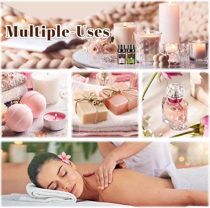 - 🌼【DIY Homemade Products】These aromatherapy oils perfect for DIY scented candles, soap, bath bombs, aroma beads, perfume, or to enhance shampoos, lotions, creams and cleaning products for clothes, carpets, yoga mats, etc.