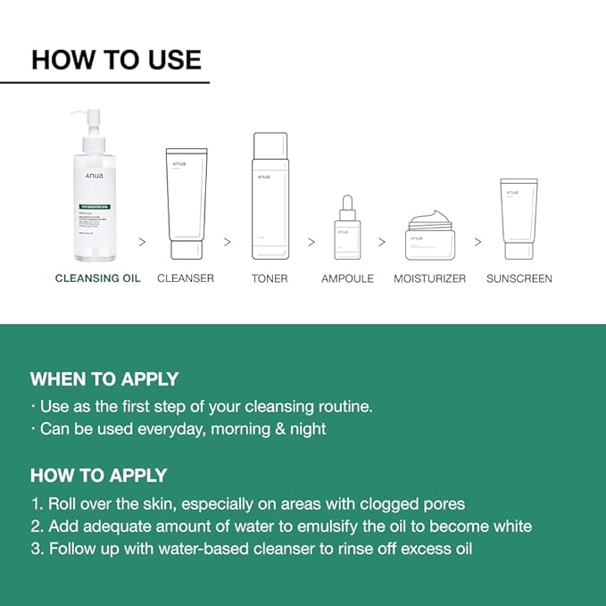 - HOW TO DOUBLE CLEANSE : ① Apply the cleansing oil to dry skin and gently massage for 1-2 minutes. ② Emulsify with water to effectively remove sebum. ③ Wash off all oil residues by using a water based cleanser.