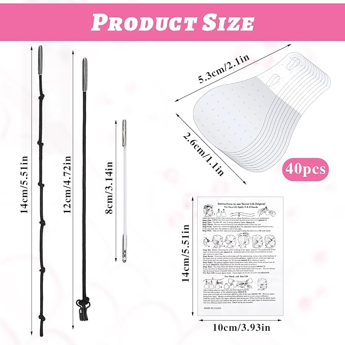 - What you will receive: You will receive 3 elastic bands and 40 face lift tapes, sufficient quantity to meet your daily replacement and use. These face lift tapes provide long-term use to keep your face, neck and eyes looking fresh and rejuvenated.