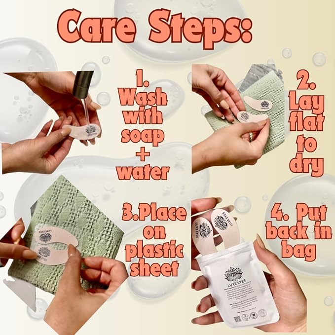 - 𝗔𝗱𝗵𝗲𝘀𝗶𝘃𝗲-𝗙𝗿𝗲𝗲 𝗘𝘆𝗲 𝗚𝗲𝗹 𝗣𝗮𝗱𝘀: Experience our anti-wrinkle eye patches, providing a snug and irritation-free fit. Luxe Eyes uses premium hypoallergenic silicone in an adhesive-free design for our under-eye masks, ensuring unmatched comfort and easy application.