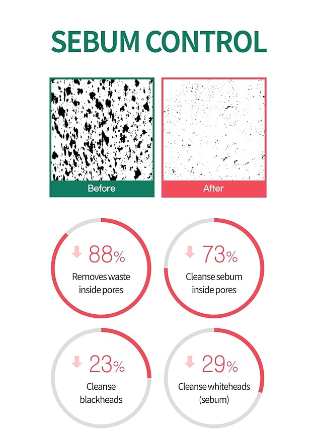 - 🌿[DEEP PORE CLEANSING] This vegan-certified facial mask is formulated to instantly cleanse your pores (88%), remove whiteheads/dirt (29%), and eliminate impurities while controlling the excessive secretion of sebum.
