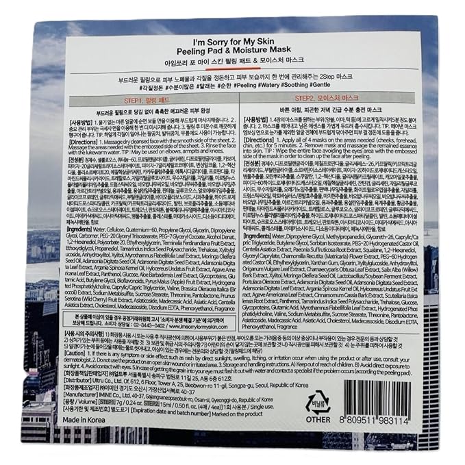 I'M SORRY FOR MY SKIN Peeling Pad & Moisture Mask, Korean Toner & Exfoliating Face Pads, Makeup Remover Cotton Rounds, Glass Skin Self Care Items, 2-Step Skin Care Travel Essentials Kit (Set of 3)