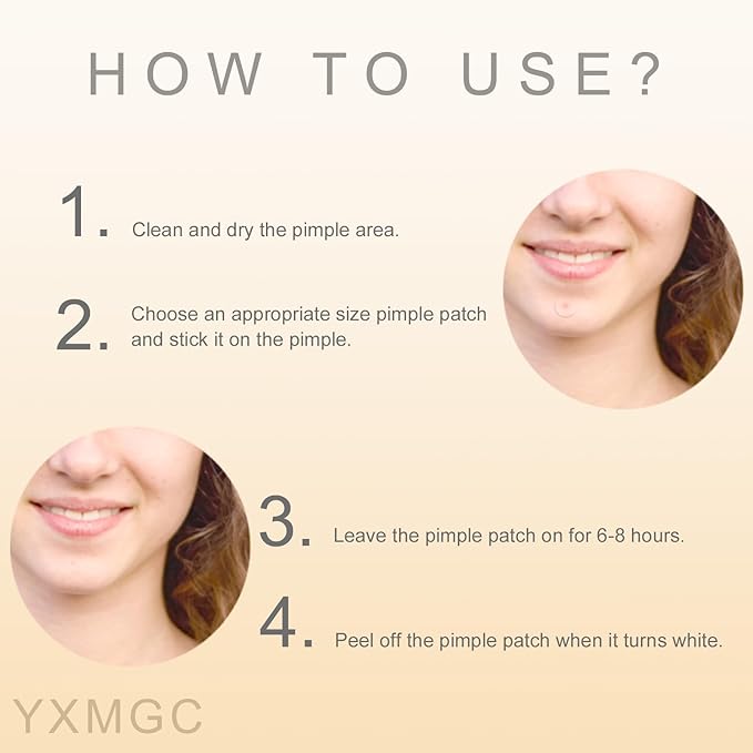 - Efficient Absorption: Made with hydrocolloid, YXMGC Pimple Patches absorb excess fluid, reducing acne and minimizing pimples in 6-8 hours. Their transparent design makes them nearly invisible, so you can wear them comfortably all day.